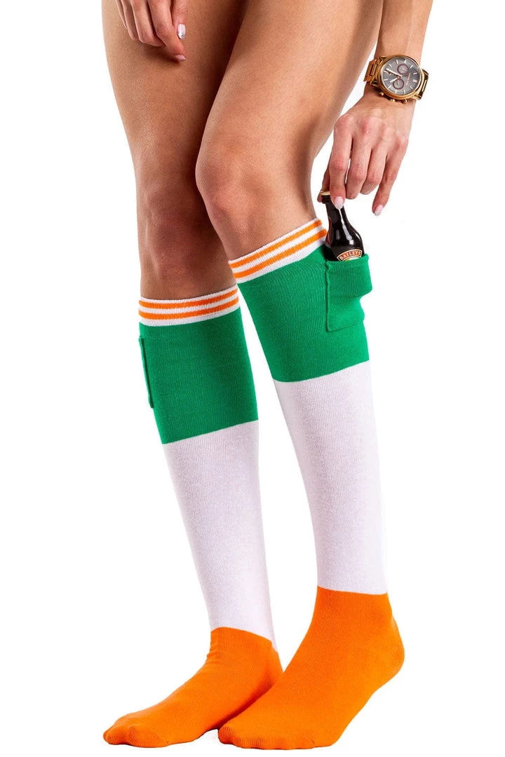 Tipsy Elves Women’s Irish Flag Shot Socks With Pockets