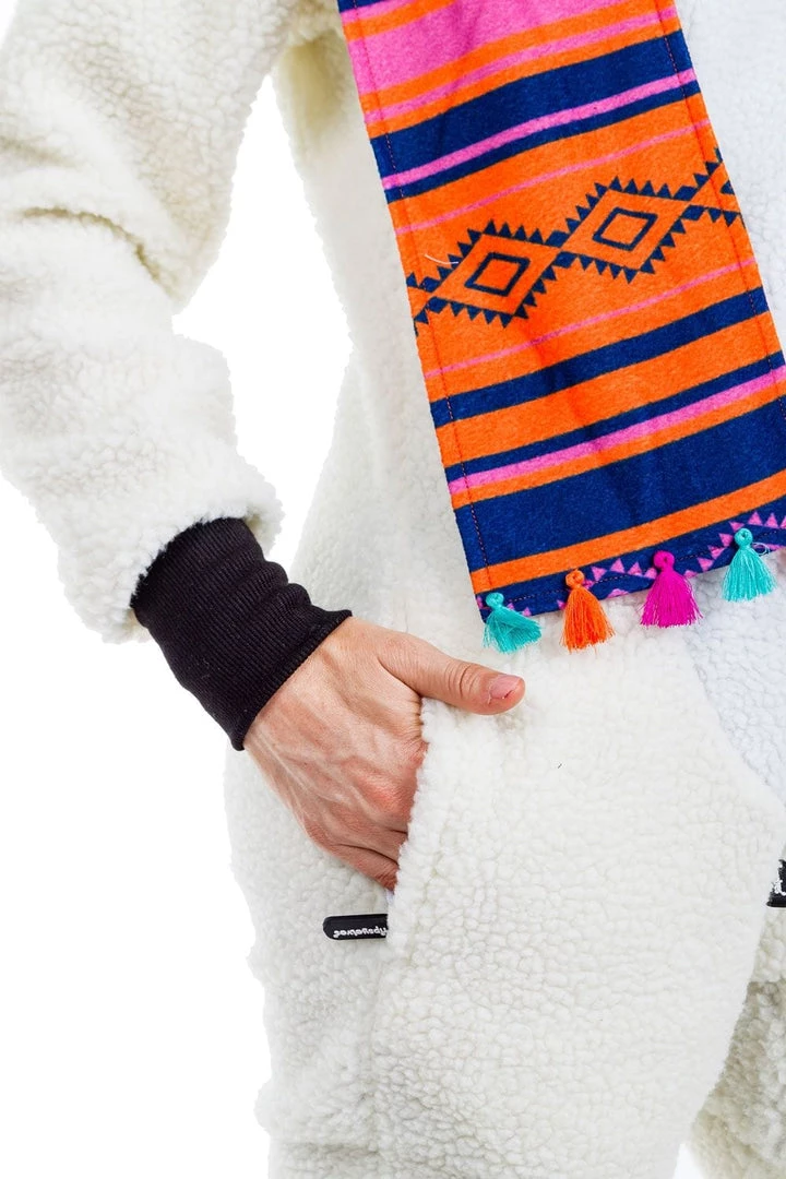 Shout out to all the sexy llama mamas! This Halloween, shake it up a little with the animal theme. Is it a camel? Is it an alpaca? Nope – it’s a chick with above average taste in costumes. No animals were harmed in the making of this 100% legit llama costume. You’ve just got to fake it to make it, baby. Complete with your own llama head hood, you can redefine the term party animal in this super comfy onesie. We’ve also added a splash of color in your very own llama scarf. Accessorizing is essential, naturally. And once you’re done trick or treating, or even strutting your stuff on the dance floor, there’s always time to hike up the Andes. This loose-fitting one-piece allows you to be totally carefree and mobile. Kiss goodbye to the horrible tight-fitting Halloween costumes of yore. The llama look is in. Get on that trend.