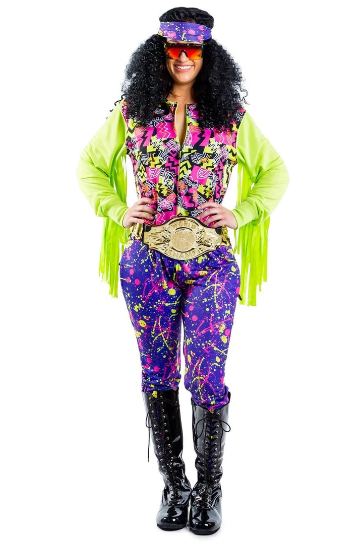Every man wants to be a macho man. Or so say some dudes in cowboy costumes. It’s not just about the boys though – we ladies are rocking it with this women’s Macho Wrestler costume. It’s a throwback to those nostalgic wrestling days when outfits were more important than kicking ass. There’s nothing subtle about Halloween, so crank it up to 11 with this flamboyant ensemble. This full-body jumpsuit comes in spooky Halloween green to help you blend in with the monsters. But it’s also got its own unique 80s-inspired jazzy pink hues. Start mainlining candy now and you’ll be seeing stars by the end of the night! There’s nothing like making an entrance, so strut your stuff with green fringed sleeves.