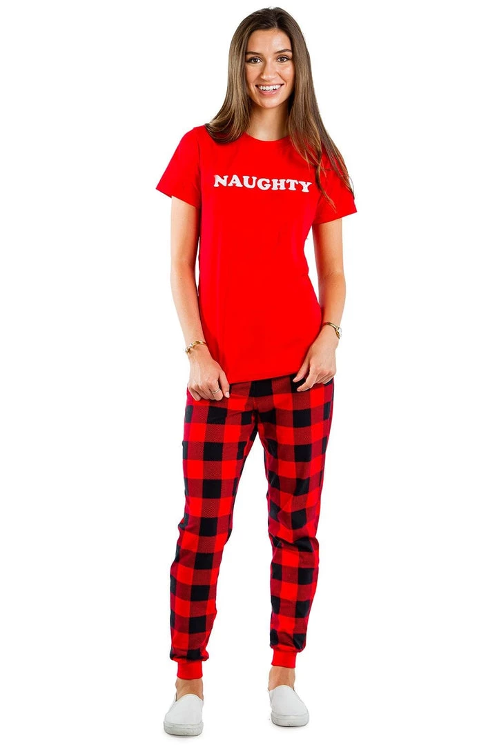 Uh-oh – looks like Santa’s spotted you this year. There’s no getting away from it. You left your waiter a horrible tip. You left the milk out. Whatever you did, the big man knows you’ve been naughty, and a big lump of coal is your prize. On the other hand, you also get the rights to these awesome pajamas. Our Women’s Naughty pajamas feature an eye-popping red top with a “naughty” motif, so you can show people just how bad you’ve been. They’re also paired with some epic lumberjack sweatpants, great for lounging about the house. Naughty’s not so bad, huh.