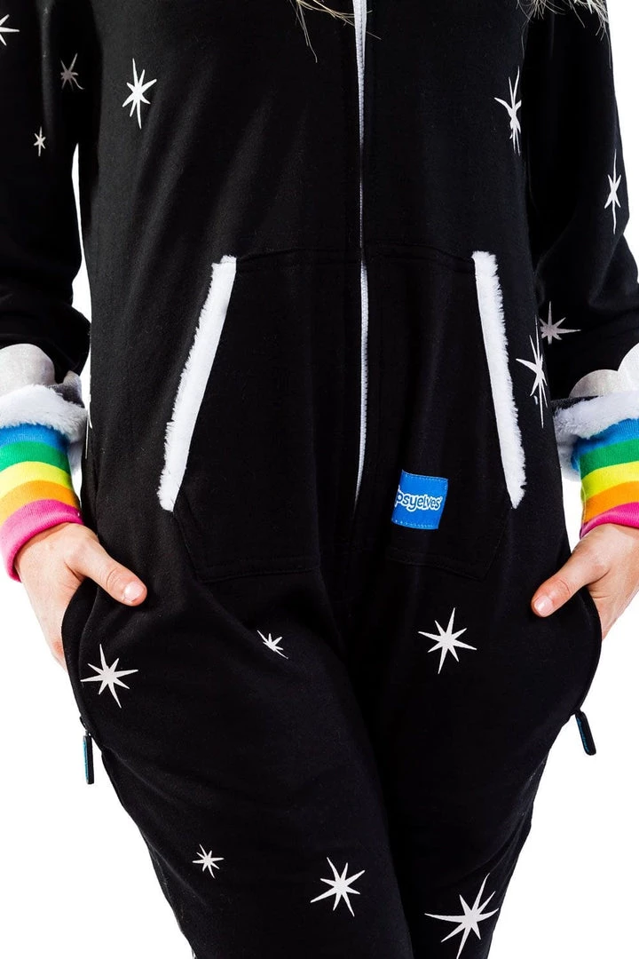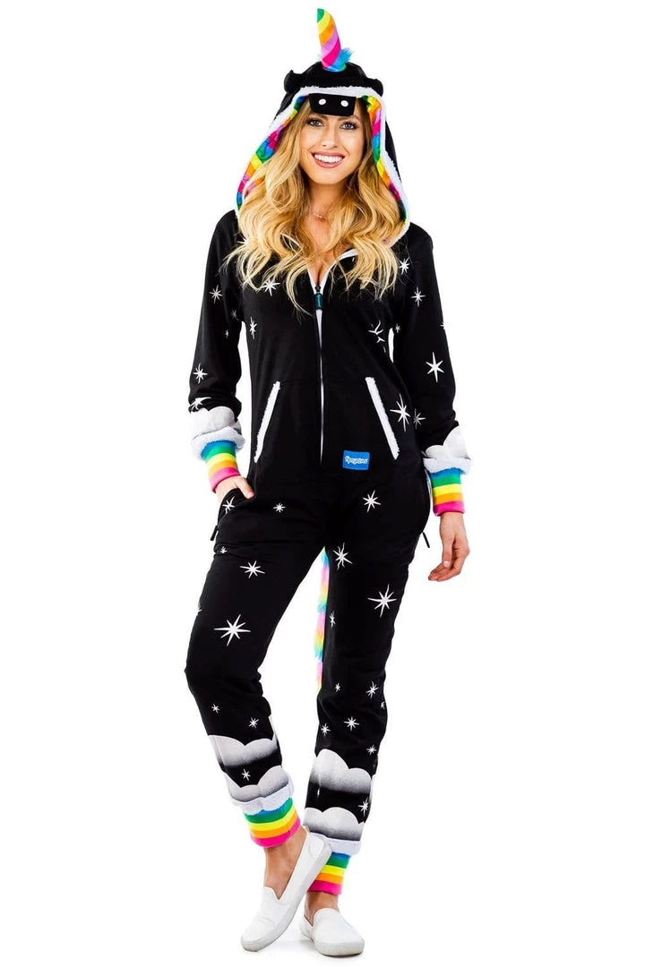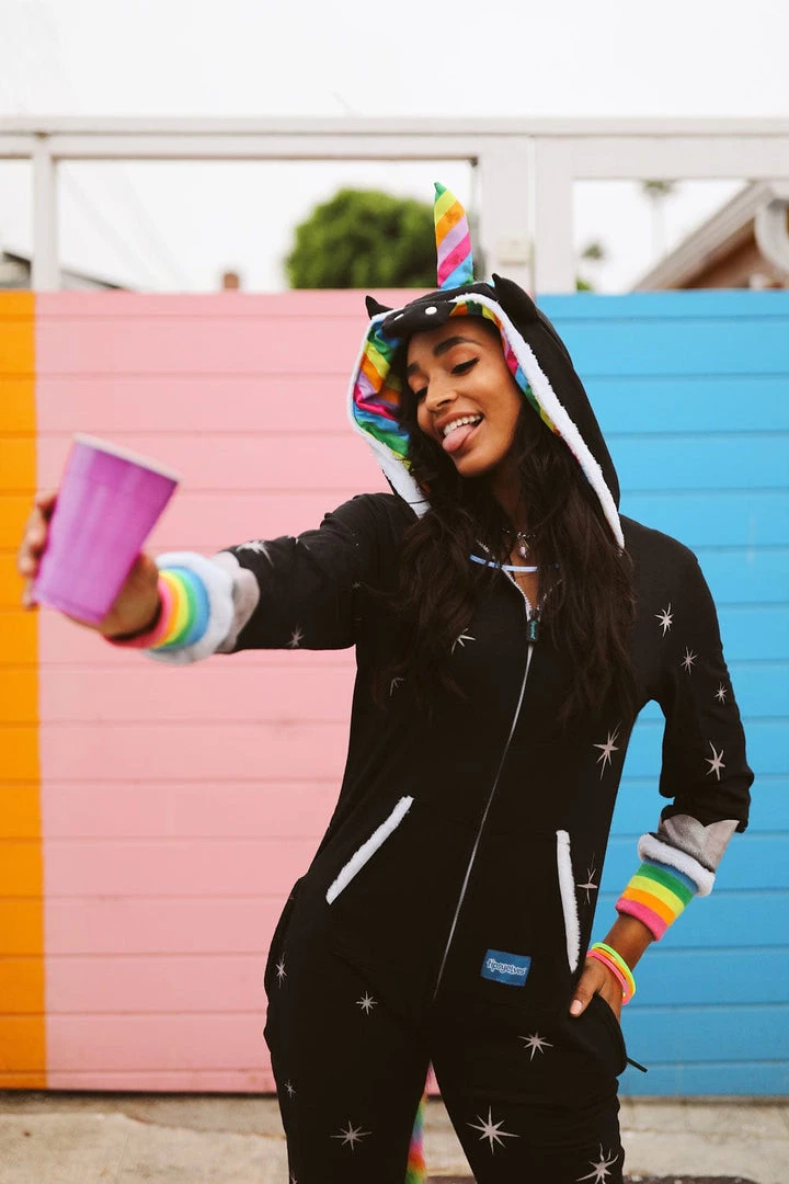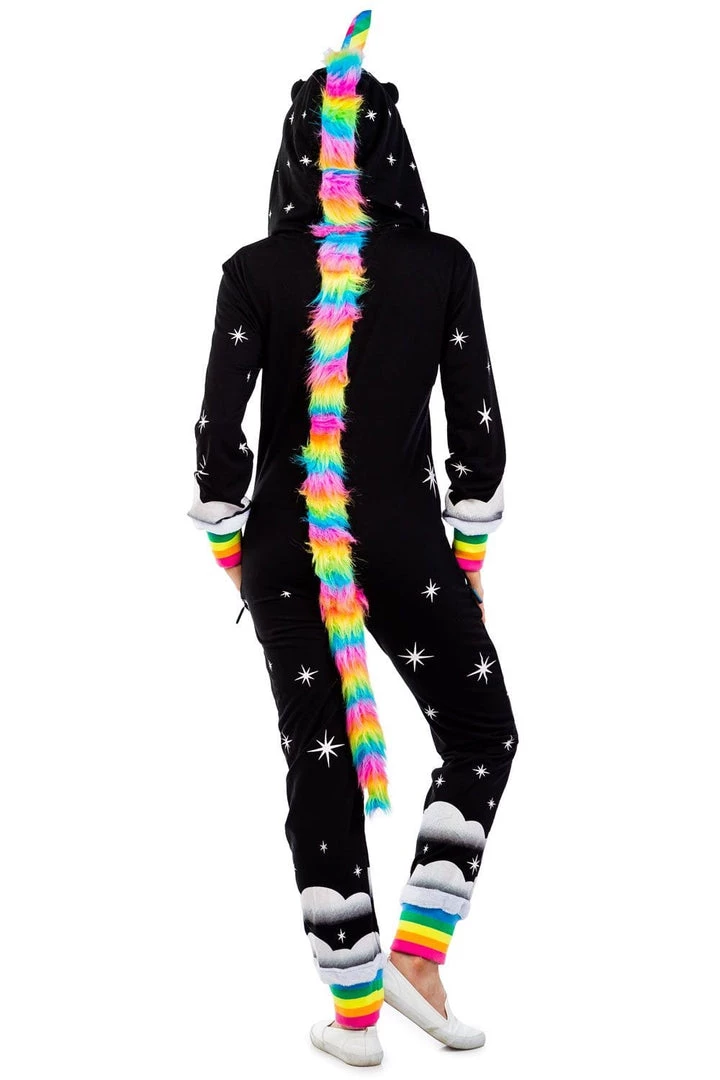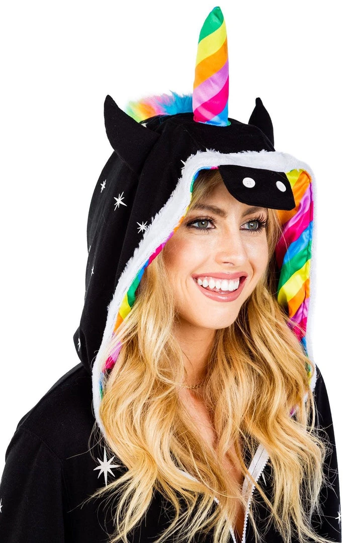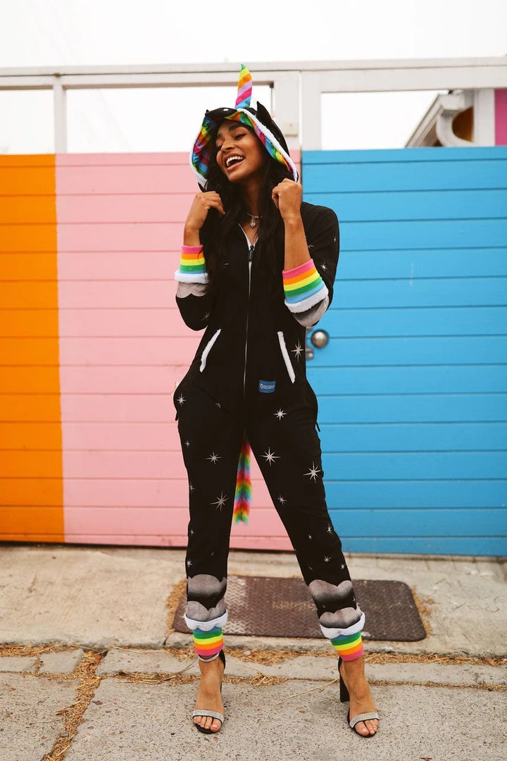 If there’s one time of the year you can indulge your nerdy fantasies, Halloween is it. Why don a chainsaw and hockey mask when you can literally eat rainbows? Our women’s black unicorn costume is everything you could want from a Halloween outfit. Dark and mysterious? Check. Colorful and fantastical? Check. Warm and comfortable? Bonus! There’s no awkward sweating or bathroom break nightmare with this unicorn costume. Just breezy living and epic dance moves. Much like being a unicorn, we’d guess. The rainbow-colored horn and tail are the cherry on top of this super cute costume. Once Halloween is over, hang with your gal pals at a pajama party or snuggle into it when you’ve got a case of the Mondays. There’s even a convenient zip to shut yourself away from the world and dive into Unicorn Land. All the horseplay with none of the hay – sign us up!