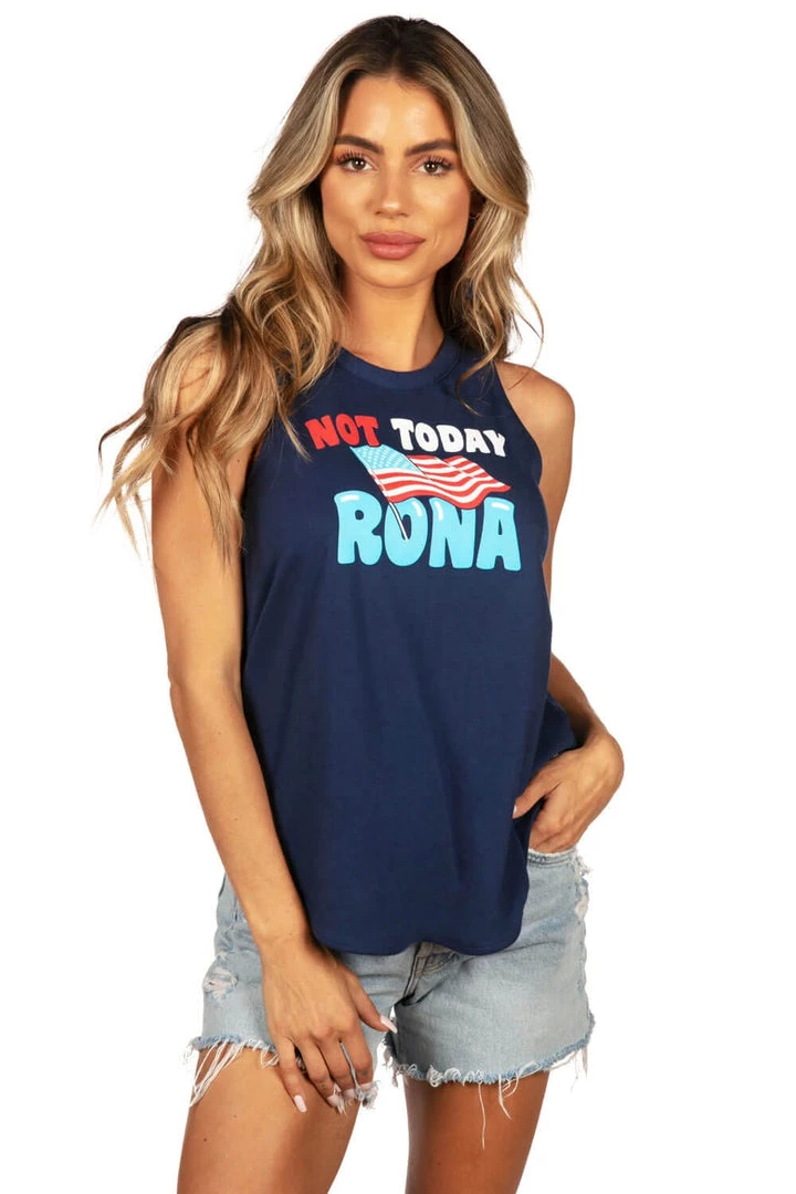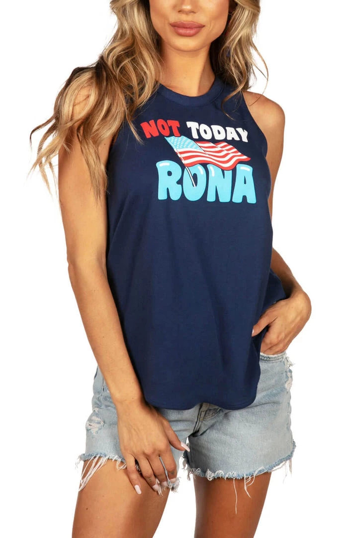 Sometimes, you just have to speak up for yourself. It’s time for Miss Rona to talk to the hand – or flag rather – in the Women’s Not Today Rona Tank Top! We’ve been holding out for the day when our free summer returns, and we won’t stand for a mention of her name. Sport your red, white and blue with a reminder that this summer will be one for the books – at least that’s one thing she-who-shall-not-be-named has given us.