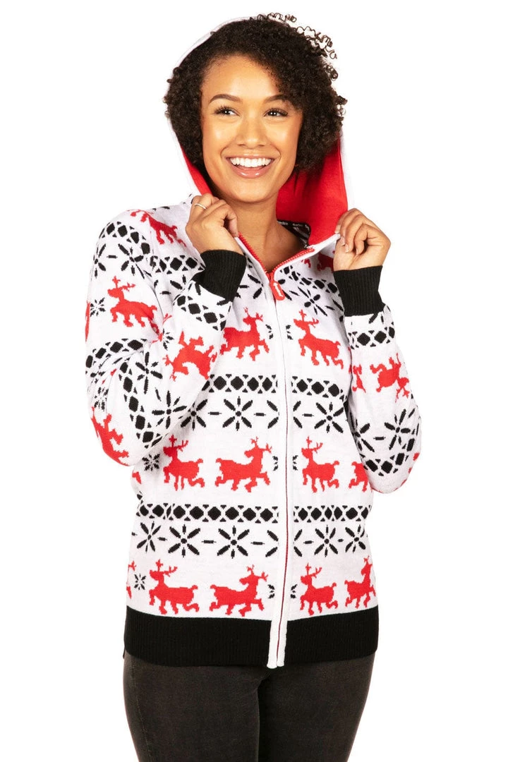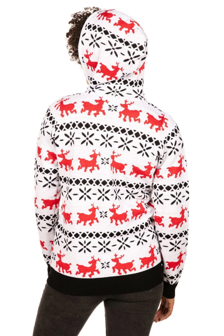 Tipsy Elves Women’s Red And White Reindeer Hoodie