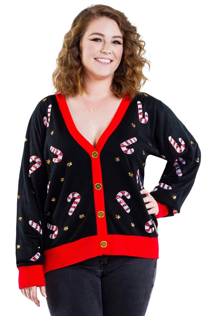 Tipsy Elves Women’s Sequin Candy Cane Plus Size Cardigan