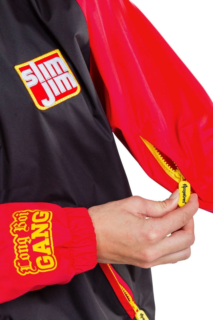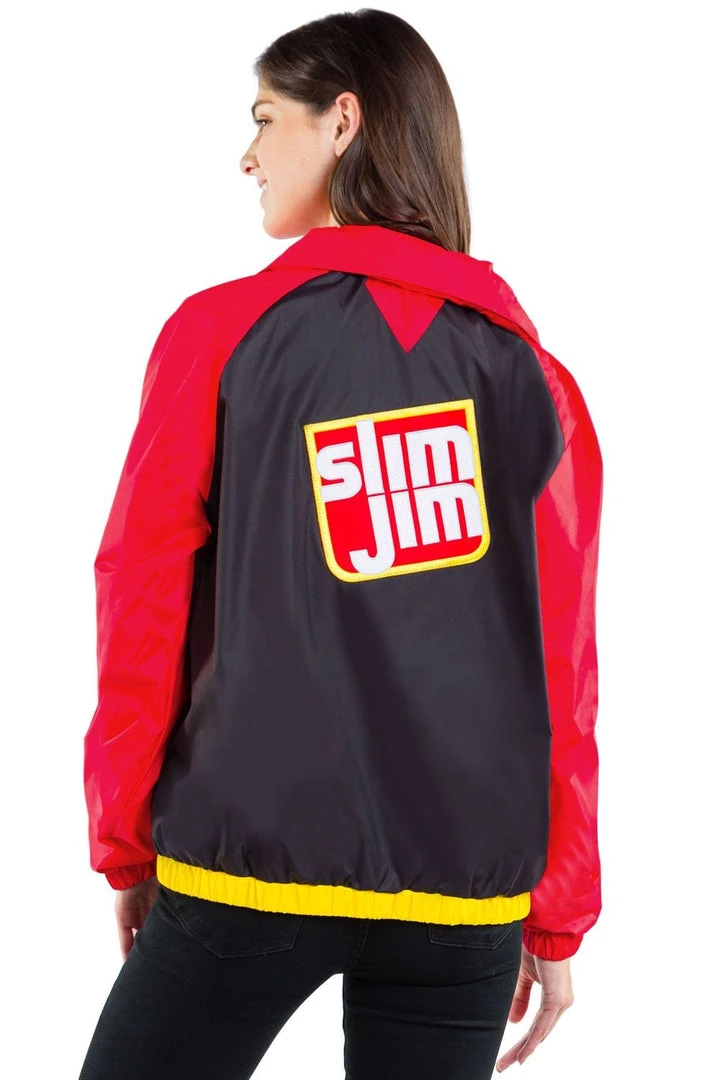Ladies, how often do you struggle to find fashion that’s also a tribute to your favorite snacks? Cupcake sweaters were so last year. We’re bringing the meat with this Women’s Slim Jim Red and Black Jacket. It’s stylish and practical with zips and pockets. Plus, this sophisticated dual-color piece is great for biking, hitting the ball games or staying toasty at a late-night barbecue. Just make sure you throw some Slim Jim snacks in the mix.
