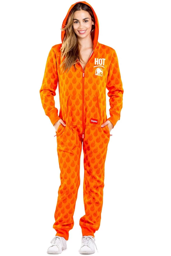 For those days when you’re feeling spicy (but not overly so) the Women’s Taco Bell Hot Stuff Jumpsuit is here to play. Keep comfortable and cozy while your vibe gives straight confidence in this jumpsuit that is an ode to your taco’s best friend.