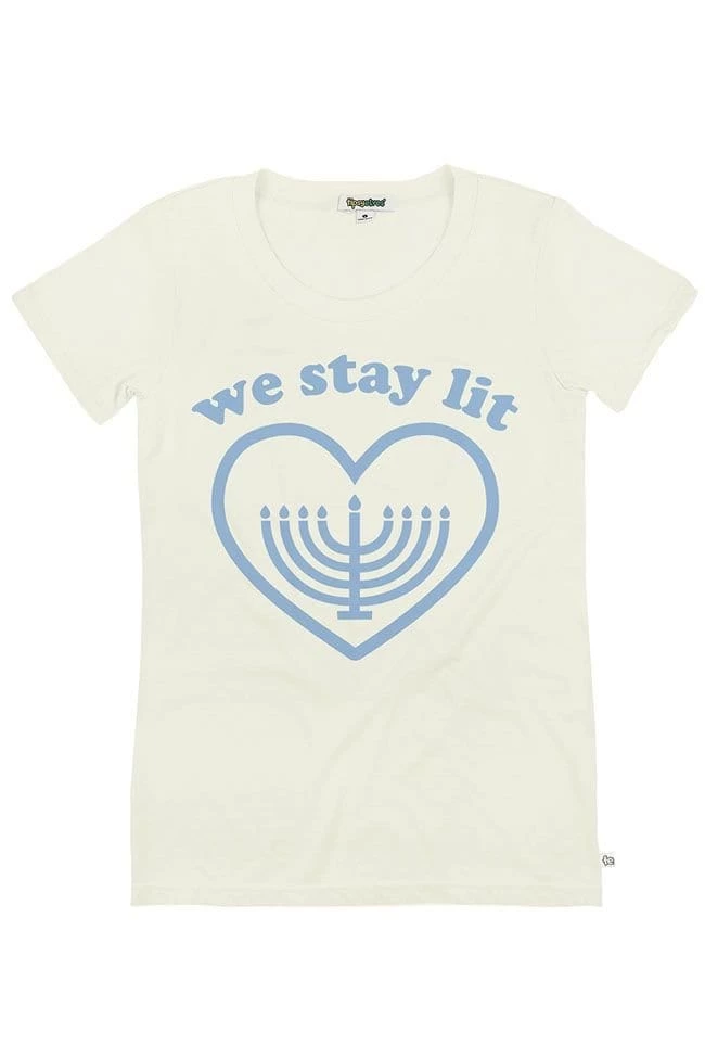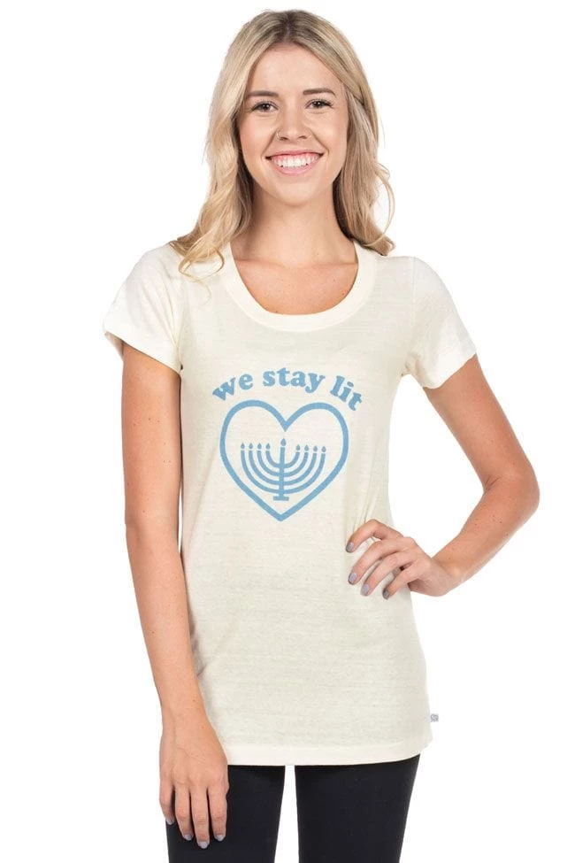 This adorable Hanukkah tee will show everyone that your heart is sending out good vibes all season long. The menorah design is a classic and you’ll love pairing it with all our accessories. Wear this top to parties or curled up at home to stream holiday movies with friends.