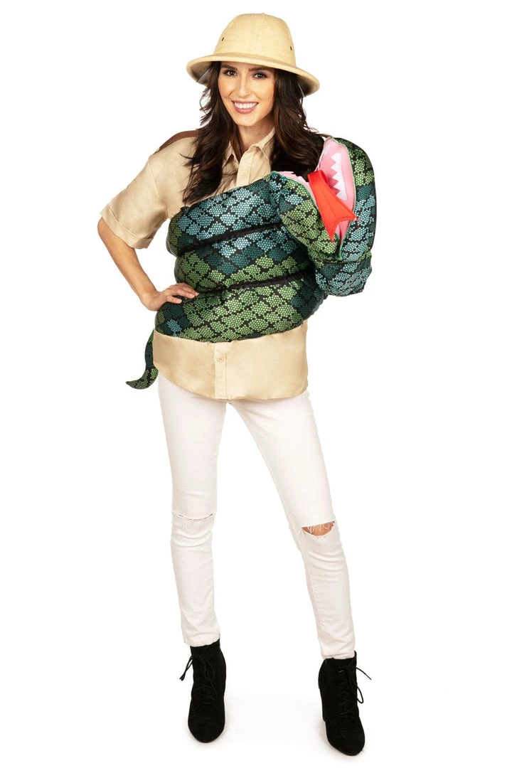 Looking to catch yourself something mighty fine this Halloween? There’s no caging this party animal with our Women’s Zoo Keeper costume. Not only will you find that authentic beige ensemble head to toe, you’ll also have your very own hat, plus the elephant in the room. Or should we say snake? Yep, it’s a big mother boa constrictor, and it’s got you all wrapped up. But don’t be alarmed. Simply slide your arm inside the snake like you would their DMs. Your hand will come out right by its razor sharp teeth – ready to bite the head off of the first person who talks you down. Push your way to the front of the drink line or make them cower as you do the rounds on your trick or treating. You might look like a friendly zoo keeper, but this snake sure ain’t taking no prisoners. Somebody call Animal Control, pronto!