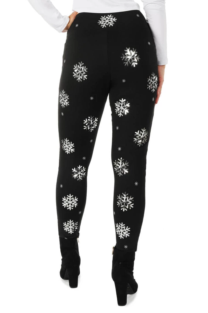 Tipsy Elves Women Sequined Snowflake High Waisted Leggings